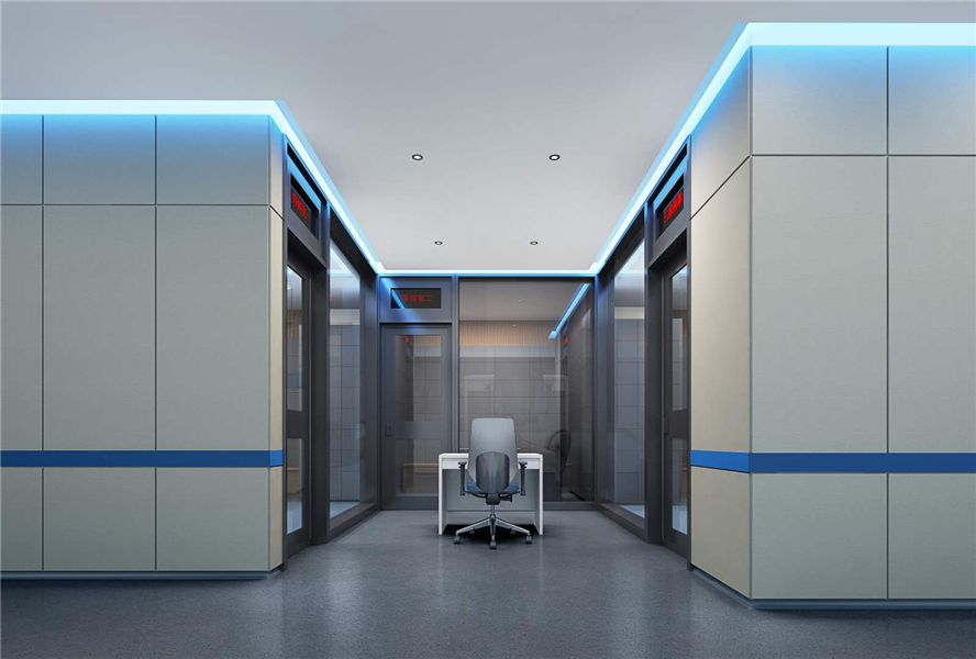 凱音審訊室防撞軟包是一種具備防撞、防火、阻燃、環保、隔音、吸音等多種功能為一體的功能性裝飾材料。表面飾面為防火布藝、防火皮革飾面或其他客戶所需定制飾面。其產品廣泛使用在電影院、會議室、紀委審訊室、審問室、辨認室、談話室、醒酒室等墻面裝飾。